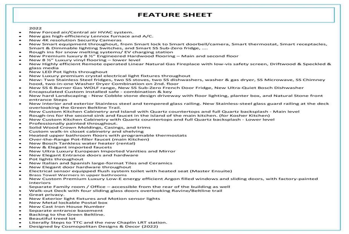 Backing To 9-Km Beltline Trail, Walking Dist. To Lrt,Ttc, Elite Public & Private Schools, High-End Shopping & Dining. Premium Appliances, Gas Fireplace, Existing Window Coverings & Lightings. Please See The Feature Sheet For Highlights.