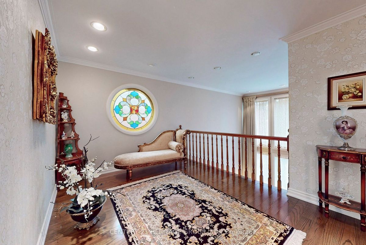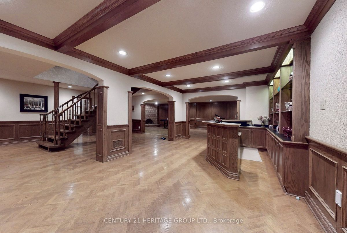 LOCATION.Custom Built Home, high demanded St, Huge Size Lot, 9Ft. Ceilings On Main Floor, Landscaped, Fenced Lot, Costum made kitchen and built in shelves.Balcony From Master Bedroom, Basement Has Kitchen, 3Pce. Bathroom, Sauna, Games Room, Cold Cellar, Cedar Wood Panel In The Basement including bar and fireplace.perfect for in laws. Family Room w fireplace ,bright.a great and big space in 2nd floor for office /TV room. Interlock Driveway,This costum made with huge and tall windows would be perfect for any details oriented clients.